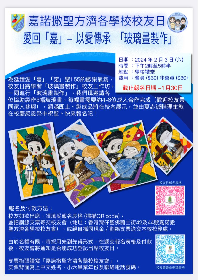 嘉諾撒聖方濟各學校校友日 愛回「嘉」-以愛傳承 「玻璃畫製作」(3-2-2024)